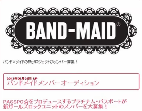 Platinum Passport publie une annonce de casting pour un nouveau groupe de rock appelé « BAND-MAID® » Les membres du groupe se produiront habillées en maids. L’annonce précise qu’ils recherchent des « femmes âgées de 15 à 24 ans ».