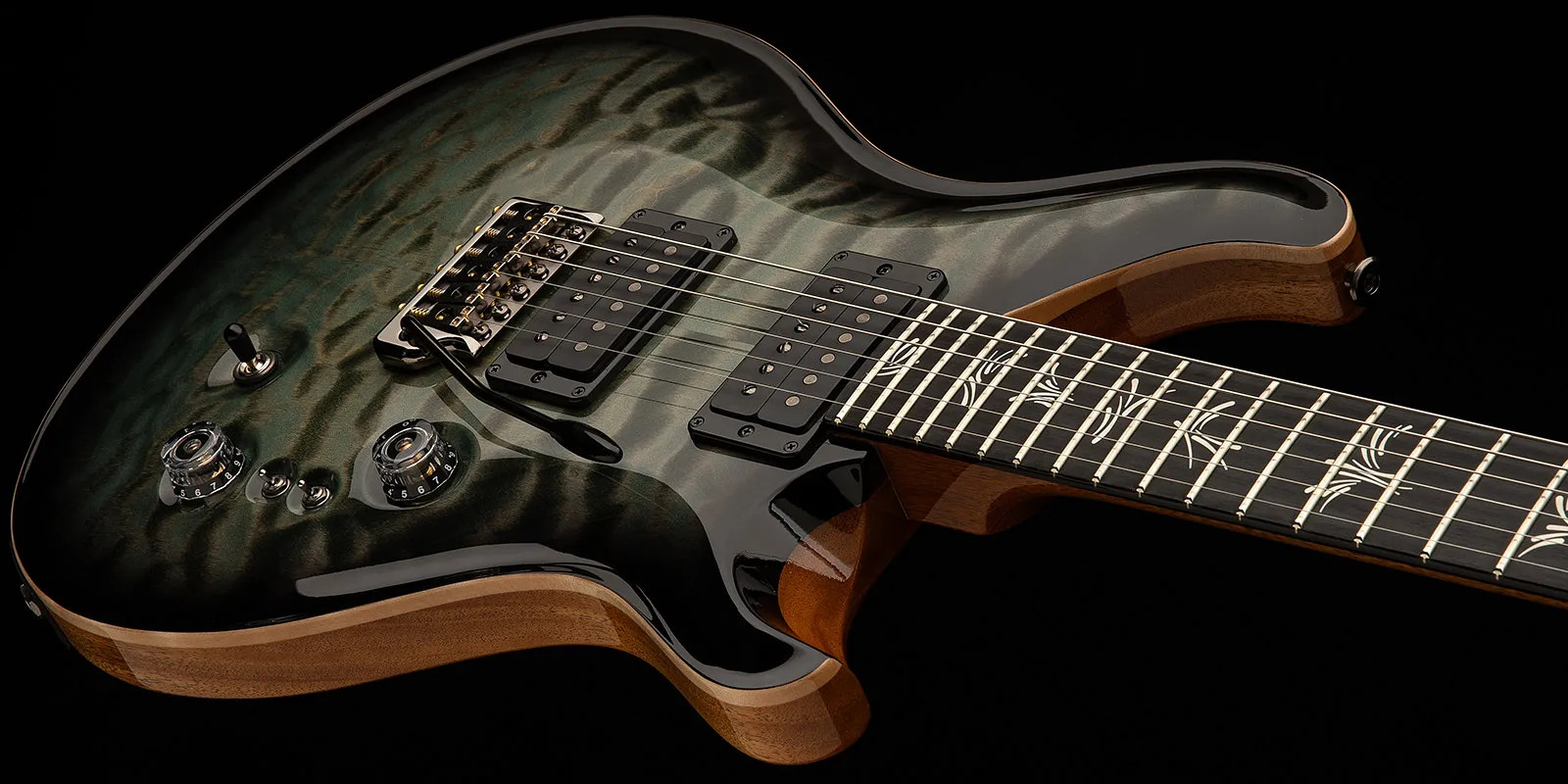 Cette édition limitée est basée sur sa guitare PRS Custom 24-08 la plus récente, mais se distingue surtout par ses micros humbuckers PRS 85/15 et ses incrustations Brushstroke Bird. Les micros PRS 85/15 offrent une clarté exceptionnelle et une palette sonore complète. Les deux mini-commutateurs de split de bobine permettent d’obtenir des sons humbuckers puissants et des sons single-coil précis sur un seul instrument… un atout indispensable pour les solos de hard rock et de métal. Parmi les autres choix personnels de Kanami, on retrouve une table en érable ondé, une touche en ébène avec incrustations Brushstroke Bird et un accastillage noir fumé. Kanami a également opté pour la teinte Trampas Green Smokeburst, du plus bel effet. Prête à vous accompagner sur scène, la PRS Kanami Limited Edition est livrée dans le nouvel étui moulé multi-positions PRS ATA.
